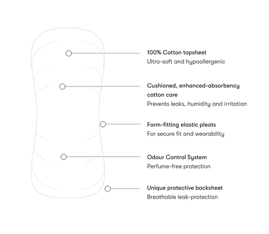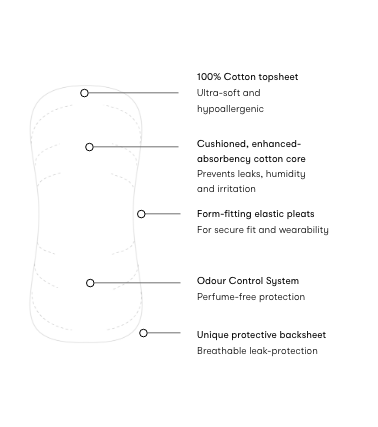 Opt for natural, reliable protection against moderate to heavy bladder leaks. Our oh-so-soft, 100% cotton* incontinence pads have a cushioned feel with form-fitting pleats – for comfortable, leak-proof security.