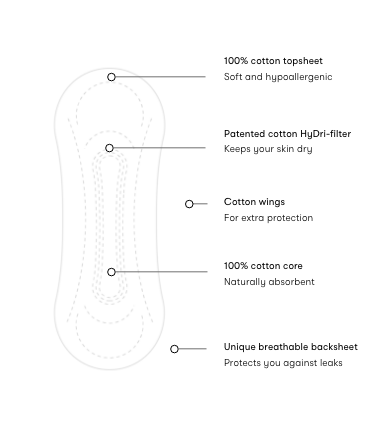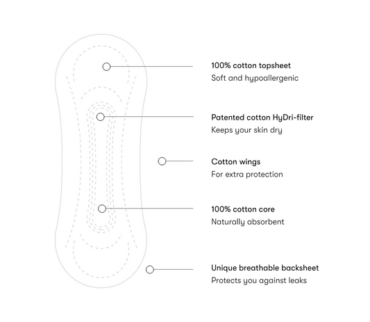 On your period? Our oh-so-soft, 100% cotton pads have got you covered! These pads are hypoallergenic, naturally absorbent and have a barely-there fit, protecting you against leaks and skin irritation.
