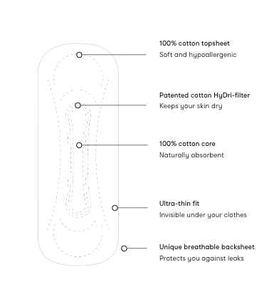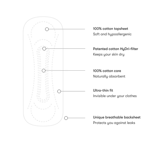 On your period? Our oh-so-soft, 100% cotton pads have got you covered! These pads are hypoallergenic, naturally absorbent and have a barely-there fit, protecting you against leaks and skin irritation like redness or bumps.