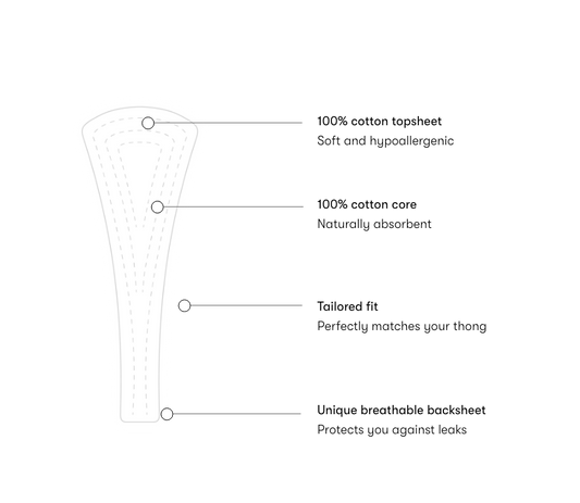 Looking for natural protection that matches your favourite thong? Our oh-so-soft, 100% cotton panty liners have got you covered! Naturally absorbent and with a unique fit, they’re perfect for everyday discharge or a light flow.