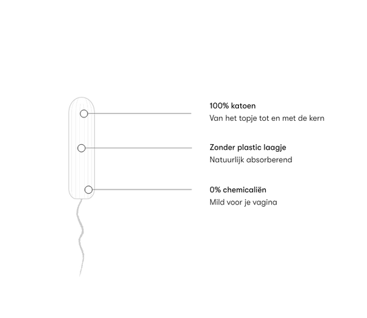 Onze 100% katoenen tampons beschermen je op lichte dagen van je menstruatie, zowel tegen vaginale irritatie (zoals jeuk of een branderig gevoel) als doorlekken. Ze zijn van nature absorberend en respecteren de pH-waarde van je vagina.